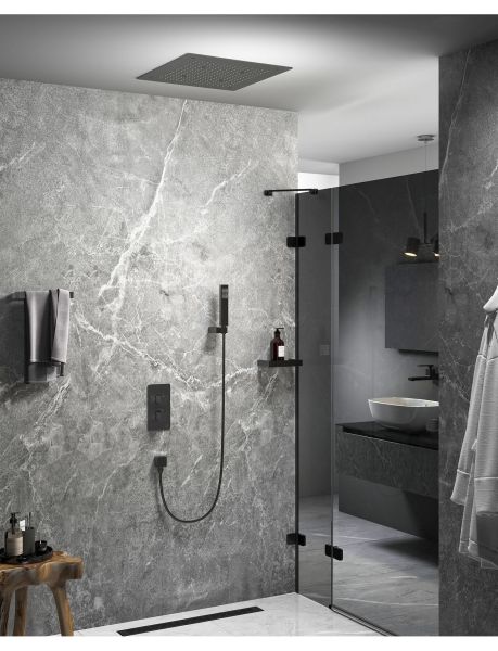 "Черное золото"- неизменно эффектный и привлекающий внимание цвет. Приглушенный мягкий оттенок черного, подчеркнет форму раковины или цвет мебели.Душевая система с термостатом Timo Petruma 5029 относится к премиальному сегменту, предназначена для монтажа в полой или твердой стене. Термостатический картридж поддерживает стабильную температуру воды, обеспечивая максимально комфортные условия для принятия водных процедур. Встроенный потолочный душ большого размера создает имитацию проливного дождя, вода обливает человека целиком. Регулируя напор воды можно получить массажное воздействие, что очень полезно для здоровья. Основные преимущества встроенной системы: элегантный внешний вид, все коммуникации и крепления спрятаны в стену и потолок, снаружи видны только декоративные элементы. Установить встроенную систему можно в любом месте. Использовать такой смеситель очень удобно, регулировка температуры воды осуществляется ручкой термостата (расположена снизу). Режим "тропический душ" и увеличение напора осуществляется поворотом ручки дивертора (расположена сверху) влево. Для переключения в режим "ручной душ" верните ручку дивертора в исходное положение 12:00 (смеситель выключен), а затем поверните вправо. Увеличение напора воды осуществляется поворотом ручки вправо. Сложностей монтажа не возникает при установке элементов душевой системы опытным сантехником. Внимательно изучите инструкцию по монтажу и эксплуатации. Цвет "черное золото" не капризен в уходе, на нем менее заметны загрязнения и мелкие царапины.