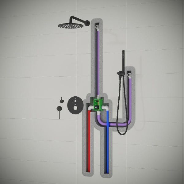 Душевая система встроенная с настенным душем с круглой лейкой в стиле модерн.
