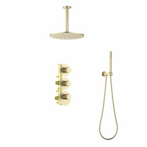 Цвет "матовое золото" никогда не выйдет из моды, во все времена драгоценный металл был признаком богатства.Душевая система с термостатом Saona 2399 относится к премиальному сегменту, предназначена для монтажа в полой или твердой стене. Верхний душ с вертикальным потолочным креплением выполнен из латуни. Термостатический картридж поддерживает стабильную температуру воды, обеспечивая максимально комфортные условия для принятия водных процедур. Регулируя напор воды в режиме "тропический душ" можно получить массажное воздействие различной интенсивности. Основные преимущества встроенной системы: элегантный внешний вид, все коммуникации и крепления спрятаны в стену, снаружи видны только декоративные элементы. Установить встроенную систему можно в любом месте. Регулировка температуры воды осуществляется ручкой термостата (расположена снизу). Включение режима "тропический душ" и регулировка напора осуществляется поворотом ручки дивертора (расположена сверху) влево. В положении ручки дивертора 12:00 режим "тропический душ" выключен. Для переключения в режим "ручной душ" поверните ручку дивертора (расположена по центру) от 12:00 против часовой стрелки. Увеличение напора воды регулируется поворотом ручки влево. В положении ручки 12:00 режим "ручной душ" выключен. Сложностей монтажа не возникает при установке элементов душевой системы опытным сантехником. Внимательно изучите инструкцию по монтажу и эксплуатации.