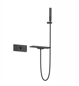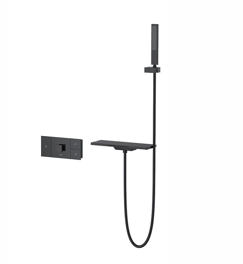 Комплектация: полка с изливом и держателем ручного душа, ручной душ, смеситель со встраиваемой частью.
