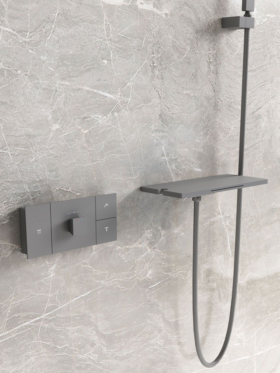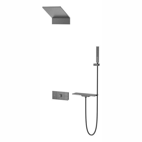 Душевой комплект Vincea Futura VSFW-2F11TGM термостатический встраиваемый, трехрежимный, вороненая сталь купить