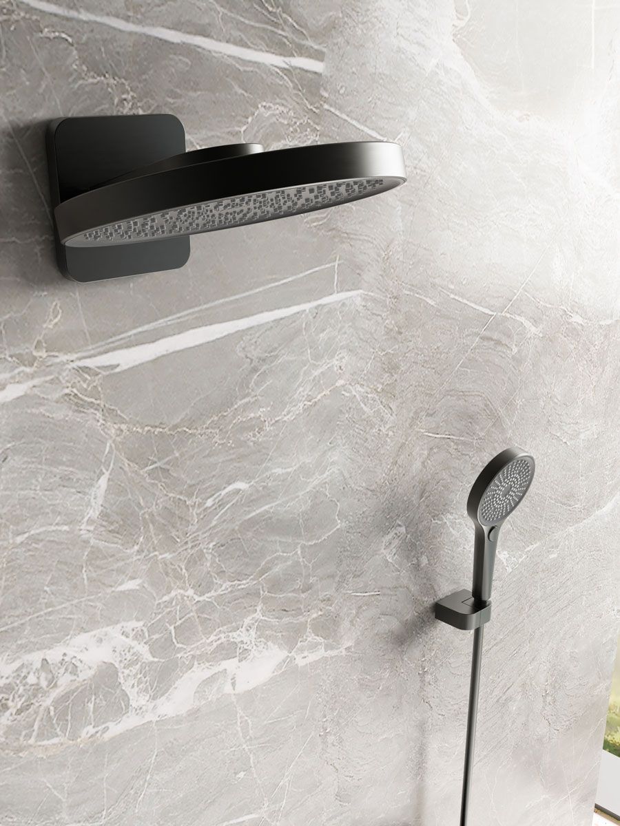 - Комплектация: верхний душ, полка с каскадным изливом и держателем ручного душа, ручной душ, смеситель со встраиваемой частью