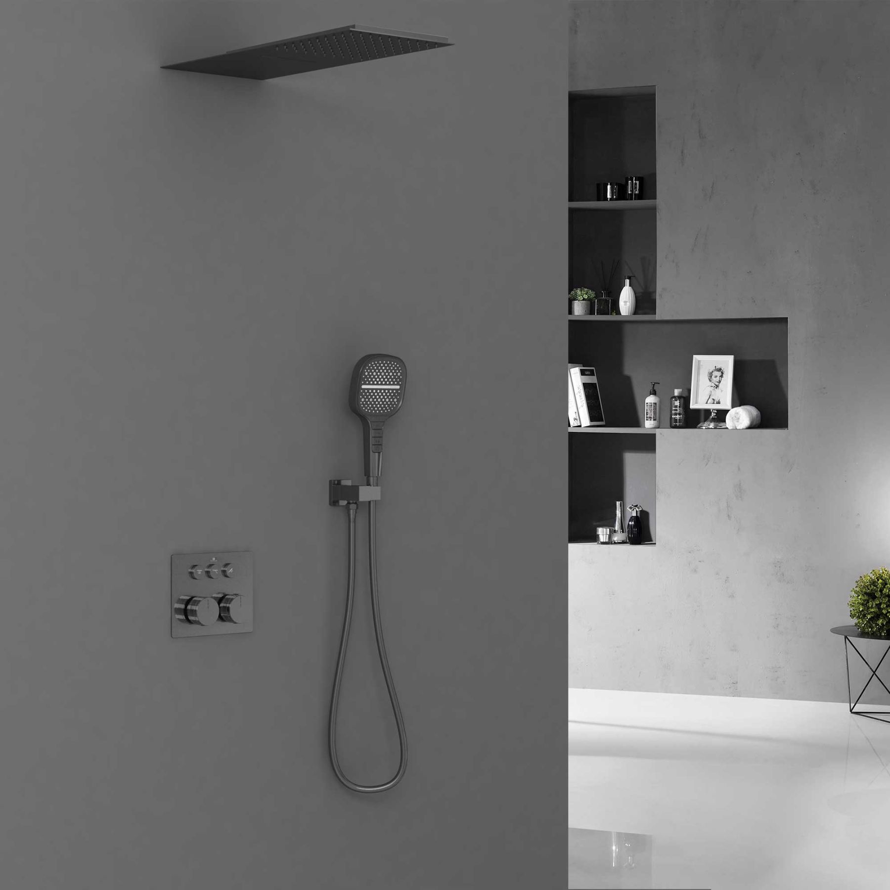 • Верхний душ, держатель ручного душа, ручной душ, встраиваемый смеситель