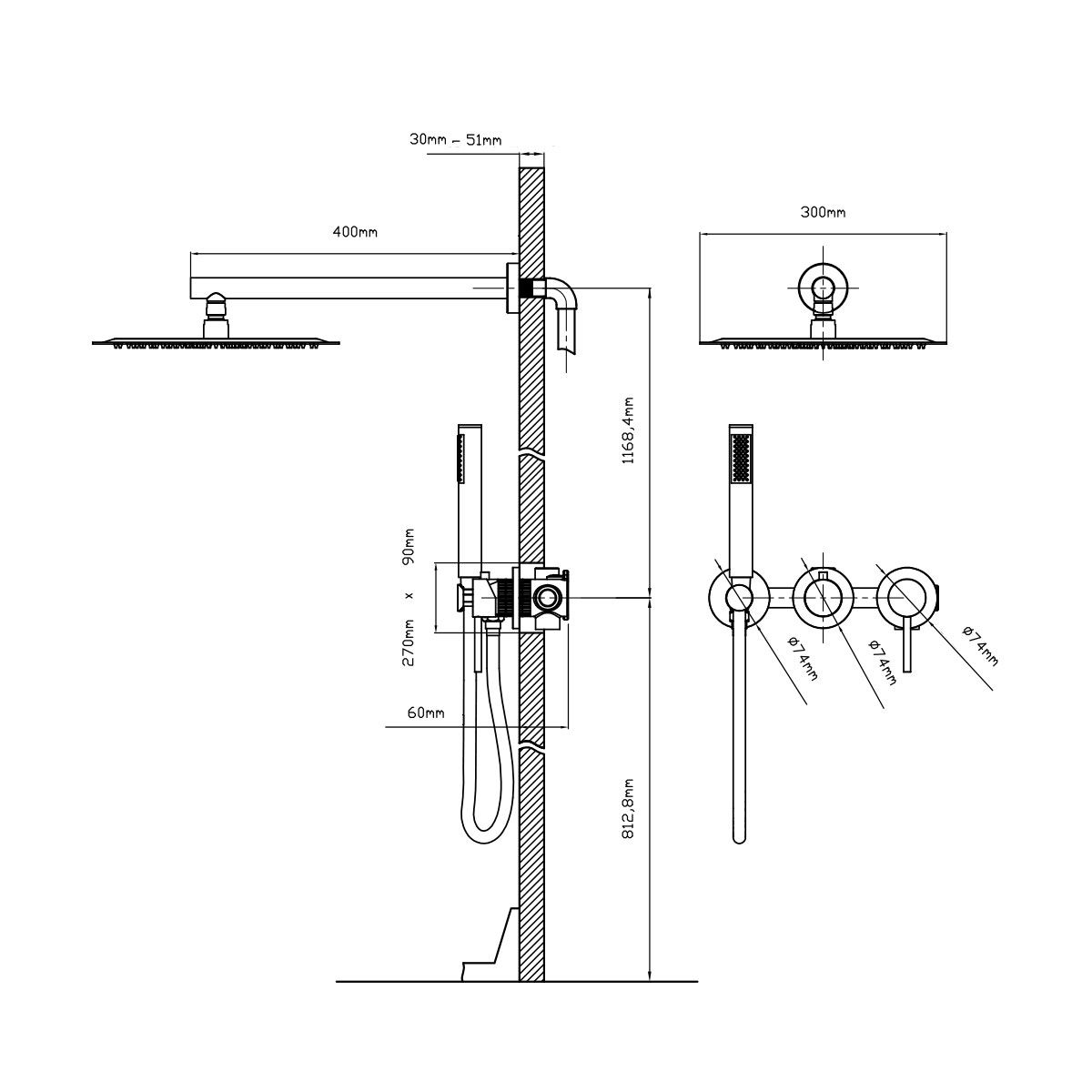 • Размер верхнего душа, см: