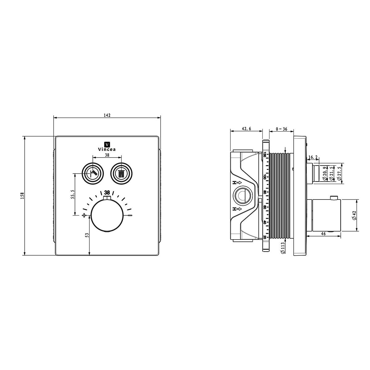 Душевой комплект Vincea Inspire VSFW-3I21T2MB встраиваемый, термостатический, двухрежимный, черный