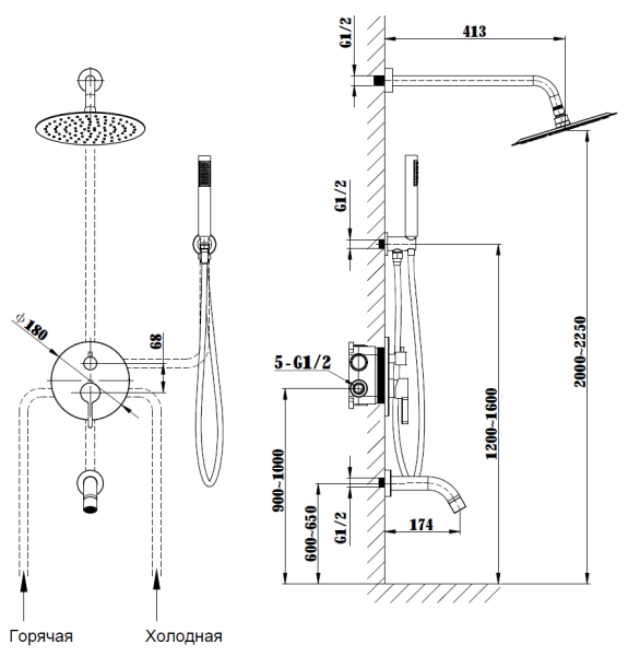 • Размер верхнего душа, см: