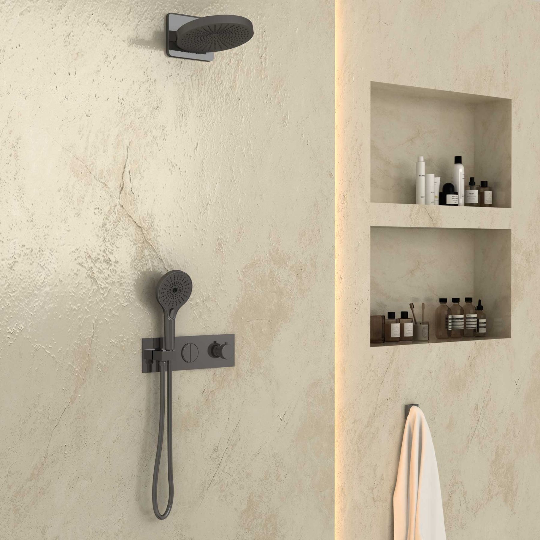Душевой комплект Vincea VSFW-422TI1GM встраиваемый, термостатический, двухрежимный, вороненая сталь