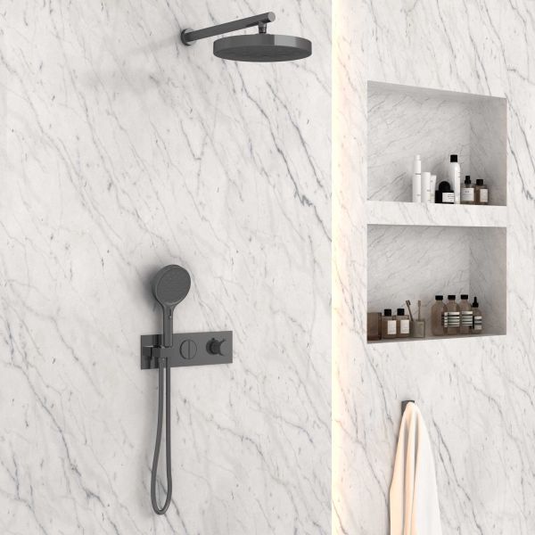 Душевой комплект Vincea VSFW-422TI2GM встраиваемый, двухрежимный, термостатический, вороненая сталь купить
