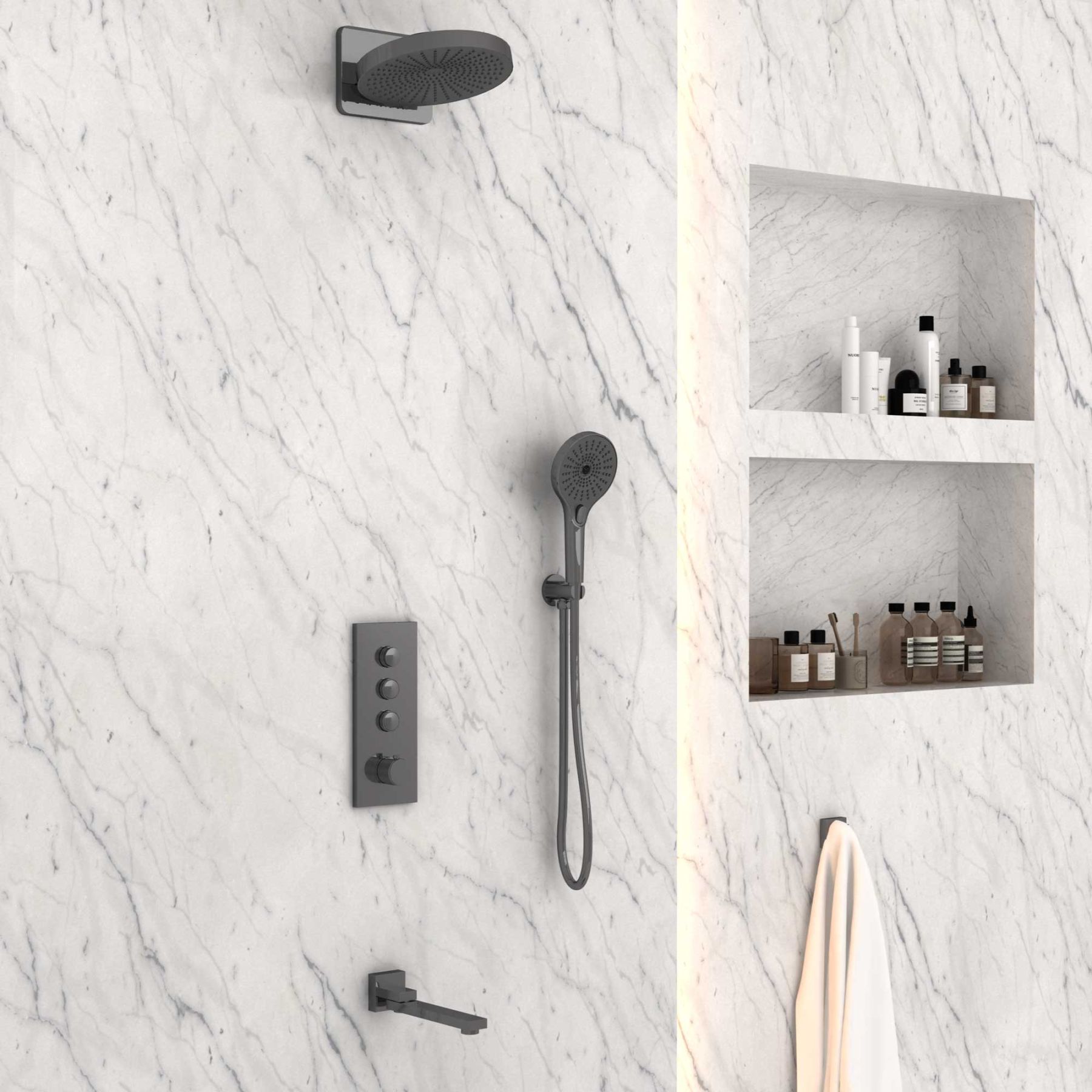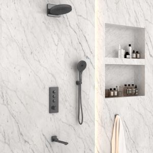 Душевой комплект Vincea VSFW-433TI1GM встраиваемый, термостатический, трехрежимный, вороненая сталь купить