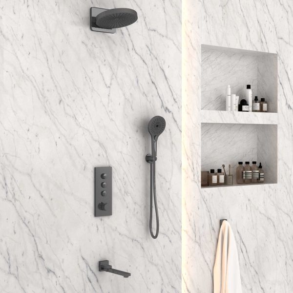 Душевой комплект Vincea VSFW-433TI1GM встраиваемый, термостатический, трехрежимный, вороненая сталь