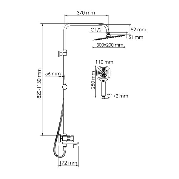 Стойка для душа, Ø 22 мм регулируемая по высоте