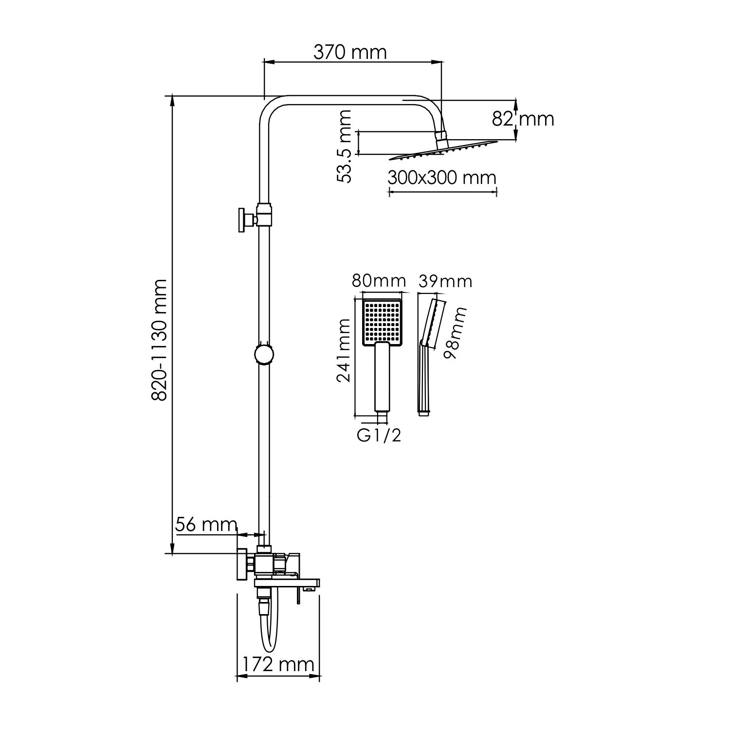 Душевая насадка 300х300 мм, 196 форсунок, нержавеющая сталь