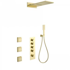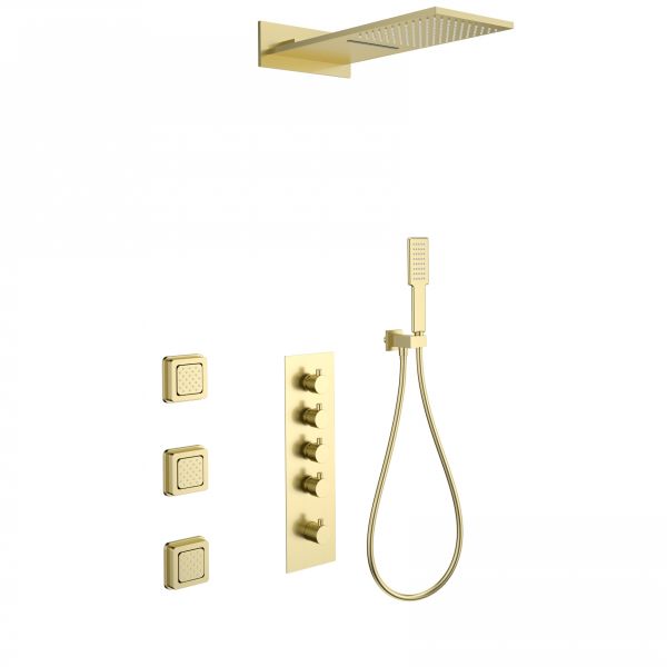 Душевая система с термостатом встраиваемая WONZON & WOGHAND, Брашированное золото (WW-D4100-BG)