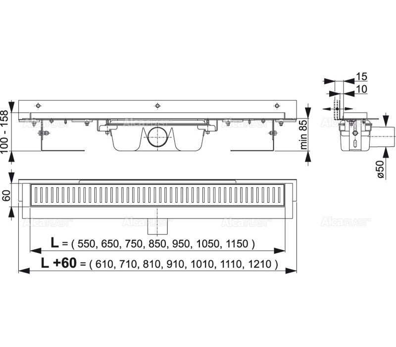Гарантия 25 летМатериал желоба: нержавеющая сталь 2 мм, AISI 304, DIN 1.4301Материал сифона: полипропиленДлина: 750 ммГидрозатвор: 50 ммСкорость стока воды: 60-68,8 л/минОбщая высота монтажа: 110 – 158 ммДиаметр сточной трубы: 50 мм Комплектация:- водоотводящий желоб с сифоном;