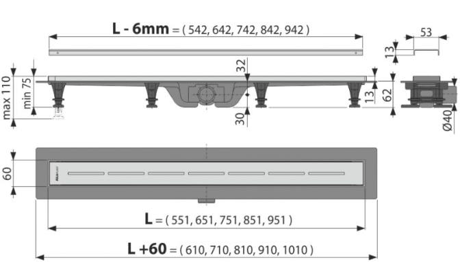 • Пластиковый желоб с порогами из нержавеющей стали, которые плотно зафиксированы по всему периметру