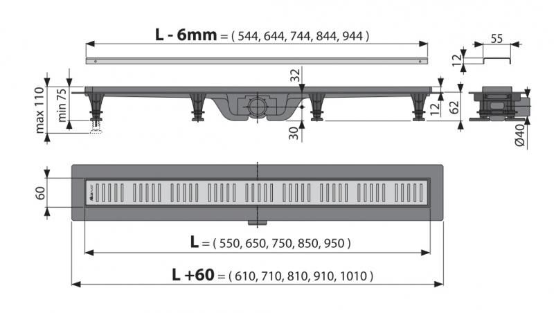 • Диаметр сливной трубы 40 мм
