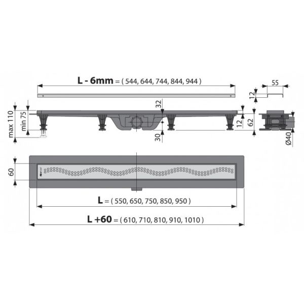 Душевой лоток AlcaPlast Simple с решеткой и опорами APZ8-950M