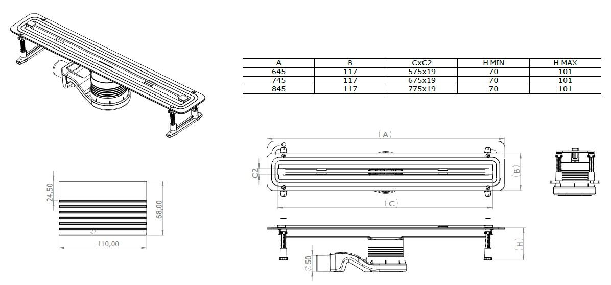 Душевой лоток Allen Brau Liberty 9.50001.SS для поддона 700 мм нержавеющая стальКласс нагрузки K=300 кг