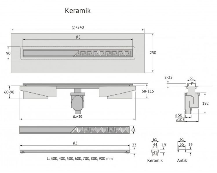 Душевой желоб Berges В1 Keramik это современное функциональное решение для оборудования водоотвода во внутренних помещениях. Выполнен из высококачественной нержавеющей стали AISI 304, что обеспечивает жесткую фиксацию в основании пола и длительное использование.Изоляционная мембрана, интегрированная в стальной корпус, гарантирует непроницаемость и совместима со всеми изоляционными материалами.Усовершенствованная система настройки высоты изделия позволяет выполнить легкую регулировку под заданную толщину покрытия, с минимальной высотой монтажа (заливки) - 65мм. Поворотный сифон с гидрозатвором имеет высокую пропускную способность 48 л/мин и оригинальную самопромывную конструкцию.Наличие съемной стальной рамки обеспечивает эстетичный внешний вид с минимальными зазорами, возможность легкого переворота решетки, а также отсутствие влаги в местах примыкания.Съемная сетка для волос (грязеуловитель) предотвращает попадание мусора в сифон и позволяет легко проводить очистку желоба. Благодаря возможности переворота решетки и вклейки плитки, вы ощутите цельность пространства в вашей ванной комнате и душевой.