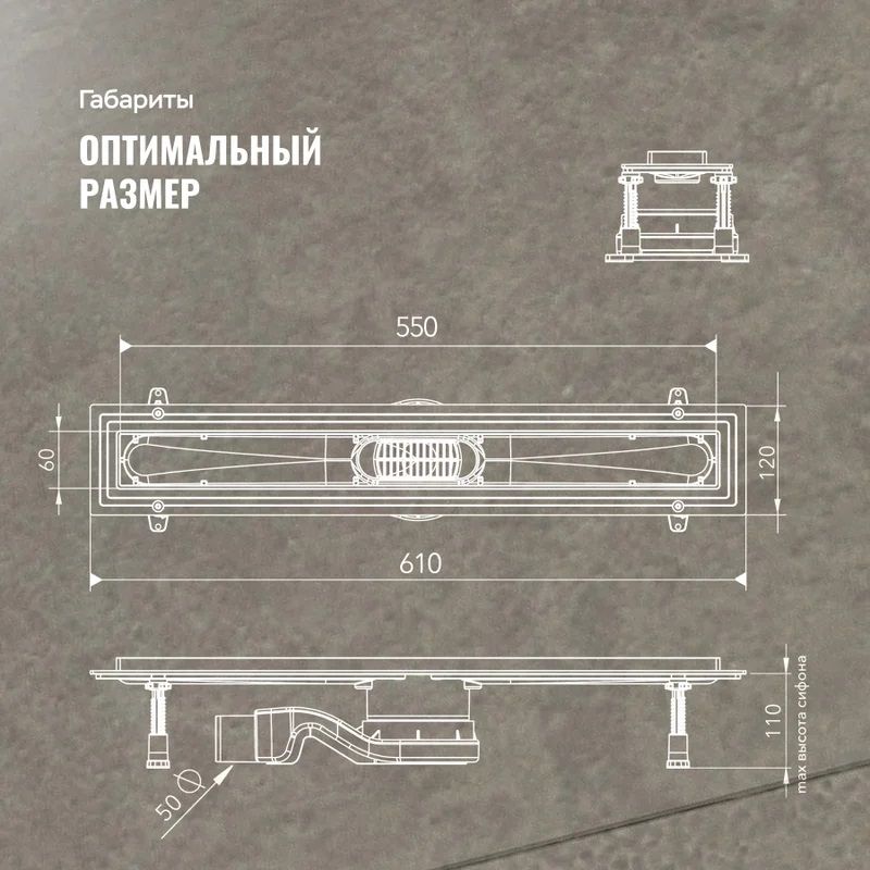 Организовать эстетичный водоотвод в душевой зоне поможет пристенный душевой лоток CK DRAIN 1105-00155. С двухсторонней щелевой решеткой из листовой нержавеющей стали AISI 304 он выглядит современно и может похвастаться непревзойденной надежностью. Высокой прочностью отличается и желоб, изготовленный из качественного пластика. Для блокировки неприятных запахов из канализации лоток снабжен мокрым затвором. Выпуск — с уклоном, установка — под плитку на одном уровне с полом (регулируемые опоры в комплекте). Максимальная пропускная способность составляет 48 л/мин.