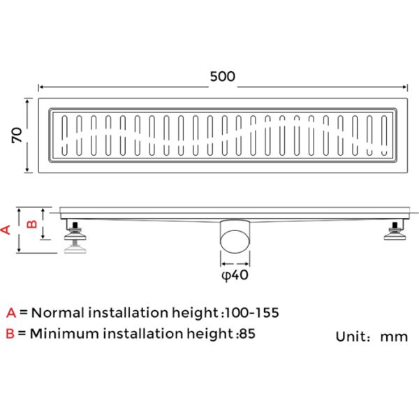 Трап для душа линейный Gappo G85007-3, длина 50 см, цвет сатин, изготовлен трап из нержавеющей стали. Минимальная монтажная высота 85 мм, боковой выпуск 40 мм, в комплекте переходник на 50 мм. Защита от запаха: комбинированный гидрозатвор, защита от проникновения запаха и жидкости из канализации.