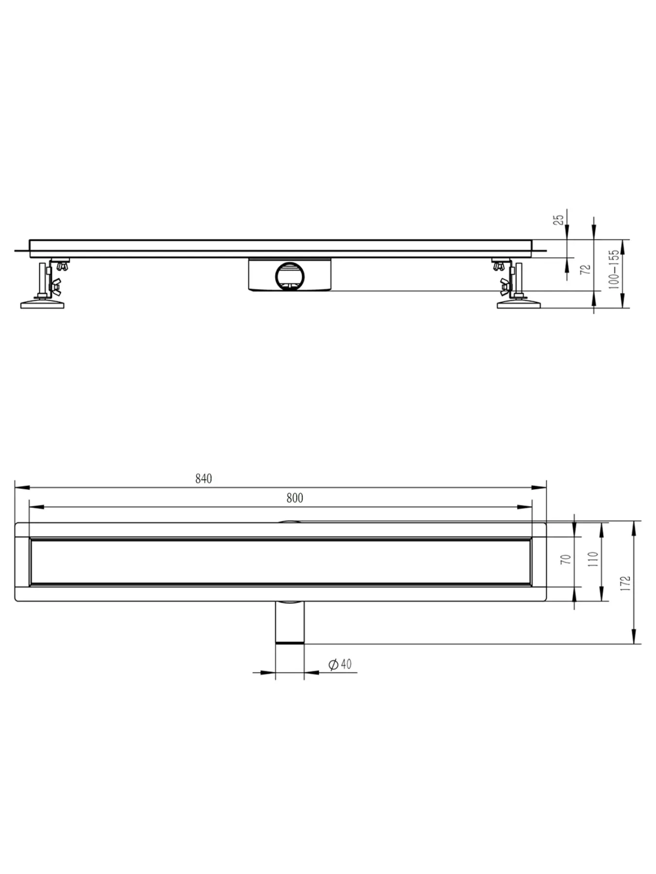 • Диаметр слива - ∅40 мм