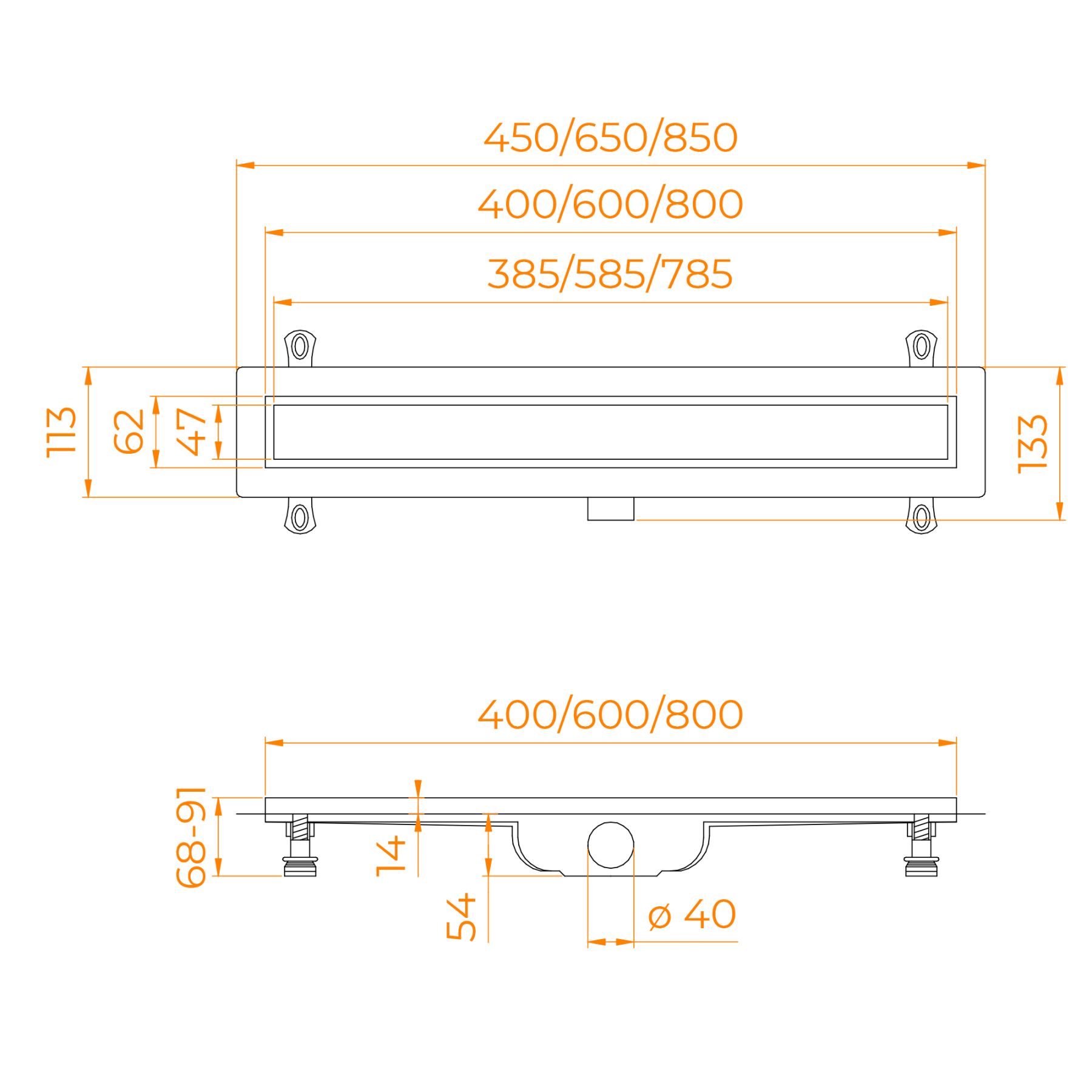 Душевой трап Leo-11 – это сантехническое изделие, созданное для отведения воды из зоны, душевого пространства, выложенное керамической плиткой или мозаикой. Модельный ряд представлен в трех вариантах длины: 40, 60 и 80 см. Трап укомплектован комбинированным затвором гидро+сухой затвор, такая конструкция позволяет на 100% исключить проникновение неприятного запаха в ванную комнату. Решётка выполнена из нержавеющей стали AISI 304, а лоток выполнен из высокопрочного ABS-пластика, такая конструкция обеспечивает максимальную надёжность конструкции более 10 лет. Решётка двухсторонняя-перевернув решётку в неё можно вложить плитку, что позволит получить идеальное сочетание с основным покрытием пола, в комплекте гидроизоляционная лента. Для эффективного стока воды лоток трапа имеет технический уклон, а для улавливания крупного мусора и волос в конструкцию входит съёмный фильтр-сетка, с помощью которого трап с лёгкостью очищается. В комплектации присутствуют ножки с регулировкой высоты, что позволит с лёгкостью произвести монтаж трапа в пол. Пропускная способность 42 л/мин.