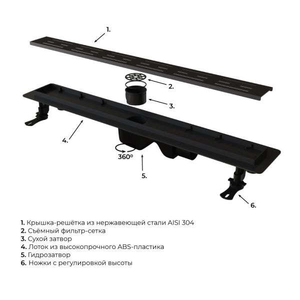 Душевой трап Leo-30 – это сантехническое изделие, созданное для отведения воды из зоны, душевого пространства, выложенное керамической плиткой или мозаикой. Модельный ряд представлен в двух вариантах длины: 60 и 80 см. Трап укомплектован комбинированным затвором гидро+сухой затвор, такая конструкция позволяет на 100% исключить проникновение неприятного запаха в ванную комнату. Решётка выполнена из нержавеющей стали AISI 304, а лоток выполнен из высокопрочного ABS-пластика, такая конструкция обеспечивает максимальную надёжность конструкции более 10 лет. Решётка двухсторонняя-перевернув решётку в неё можно вложить плитку, что позволит получить идеальное сочетание с основным покрытием пола, в комплекте гидроизоляционная лента. Для эффективного стока воды лоток трапа имеет технический уклон, а для улавливания крупного мусора и волос в конструкцию входит съёмный фильтр-сетка, с помощью которого трап с лёгкостью очищается. В комплектации присутствуют ножки с регулировкой высоты, что позволит с лёгкостью произвести монтаж трапа в пол. Нижний сифон имеет поворотное основание, что позволит подвести сливную трубу с любой стороны. Пропускная способность 42 л/мин.