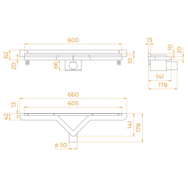 - Визуально скрытый дренаж с треугольной крышкой из нержавеющей стали, позволяющей вложить плитку и воплотить дизайн-концепцию в стиле "минимализм";