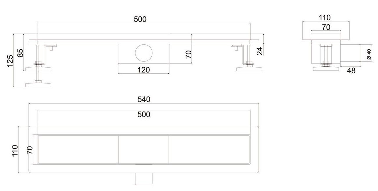 Диаметр сливого отверстия: 40 мм (в комплекте переходник на 50 мм).