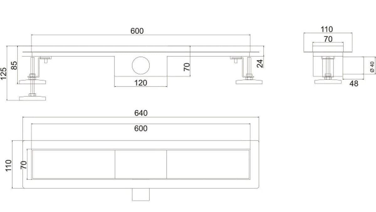 Душевой лоток РМС ТЛ-04-60х7 60см нержавеющая сталь купить