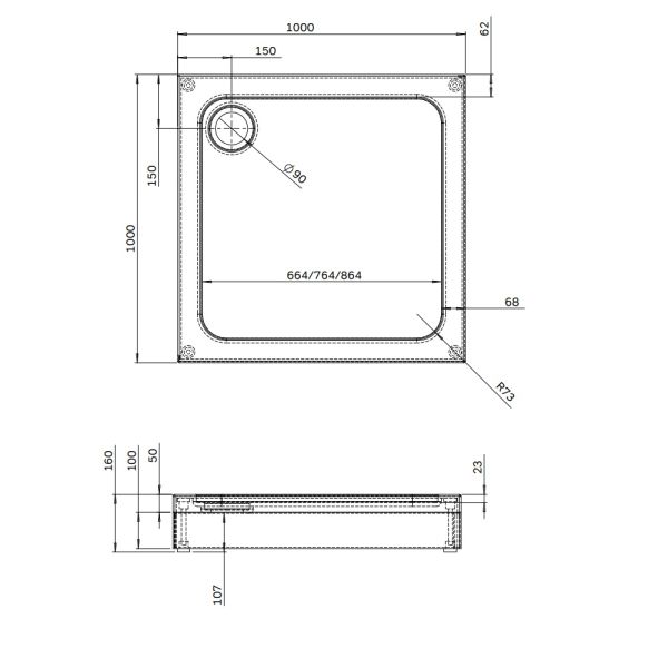 Душевой поддон Am.Pm Gem W90T-403-100W 100x100 см с сифоном