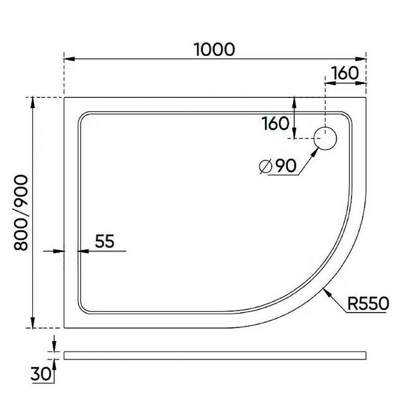 Диаметр сливного отверстия: 90 мм.