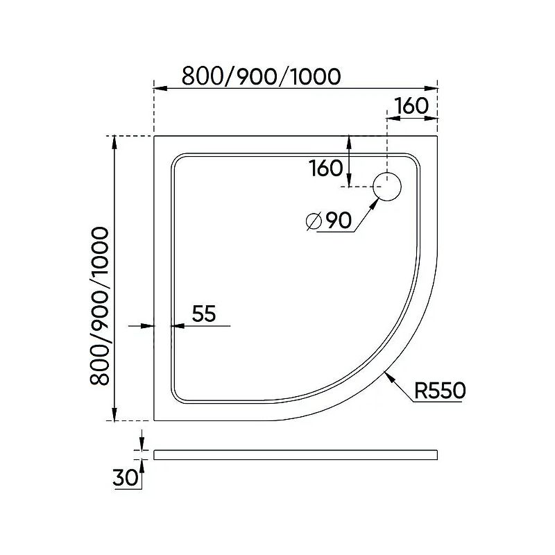 Размеры (ШхВхД): 800х30х800 мм.