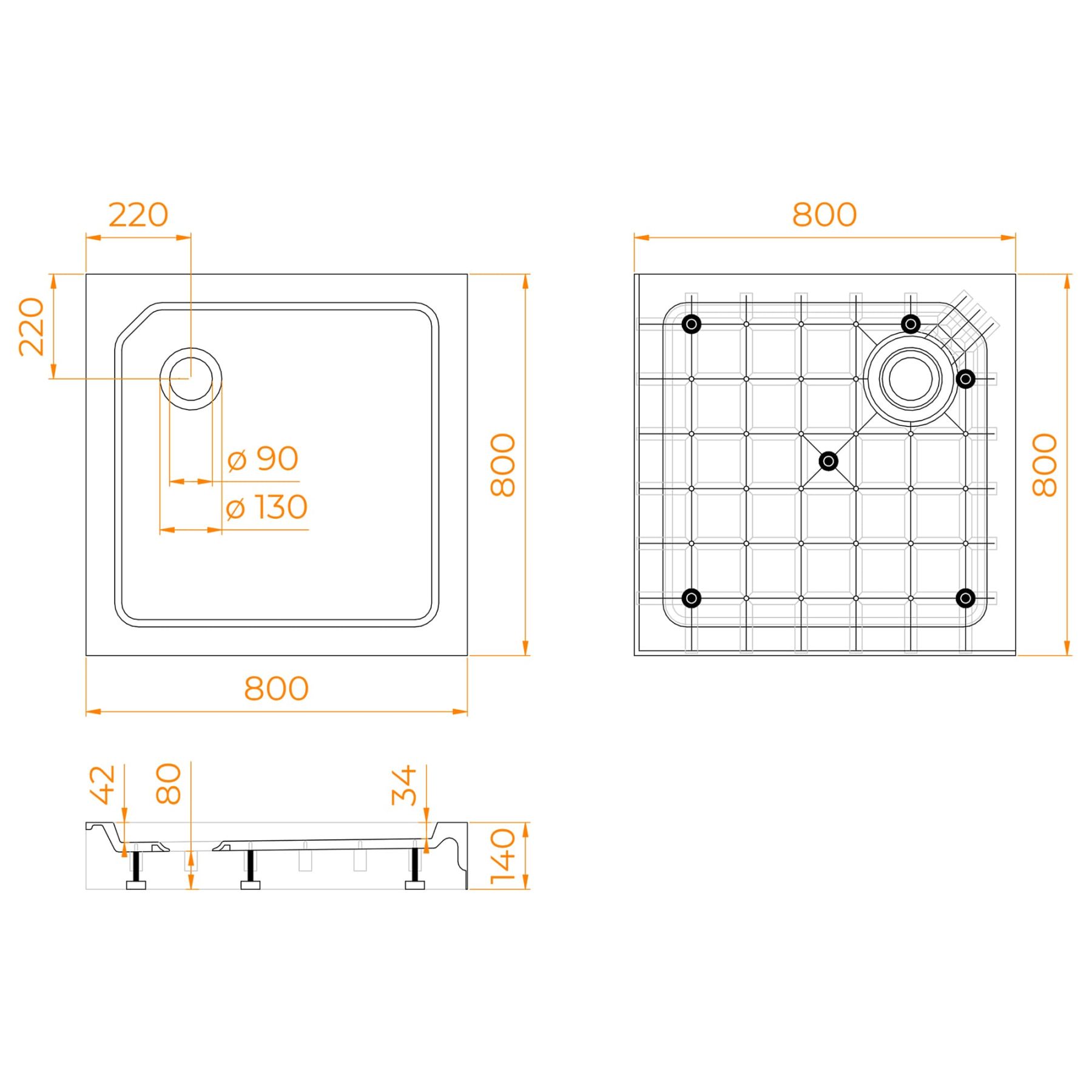 Душевой поддон RGW SMC-C-088 12350188-01 80x80 см белый