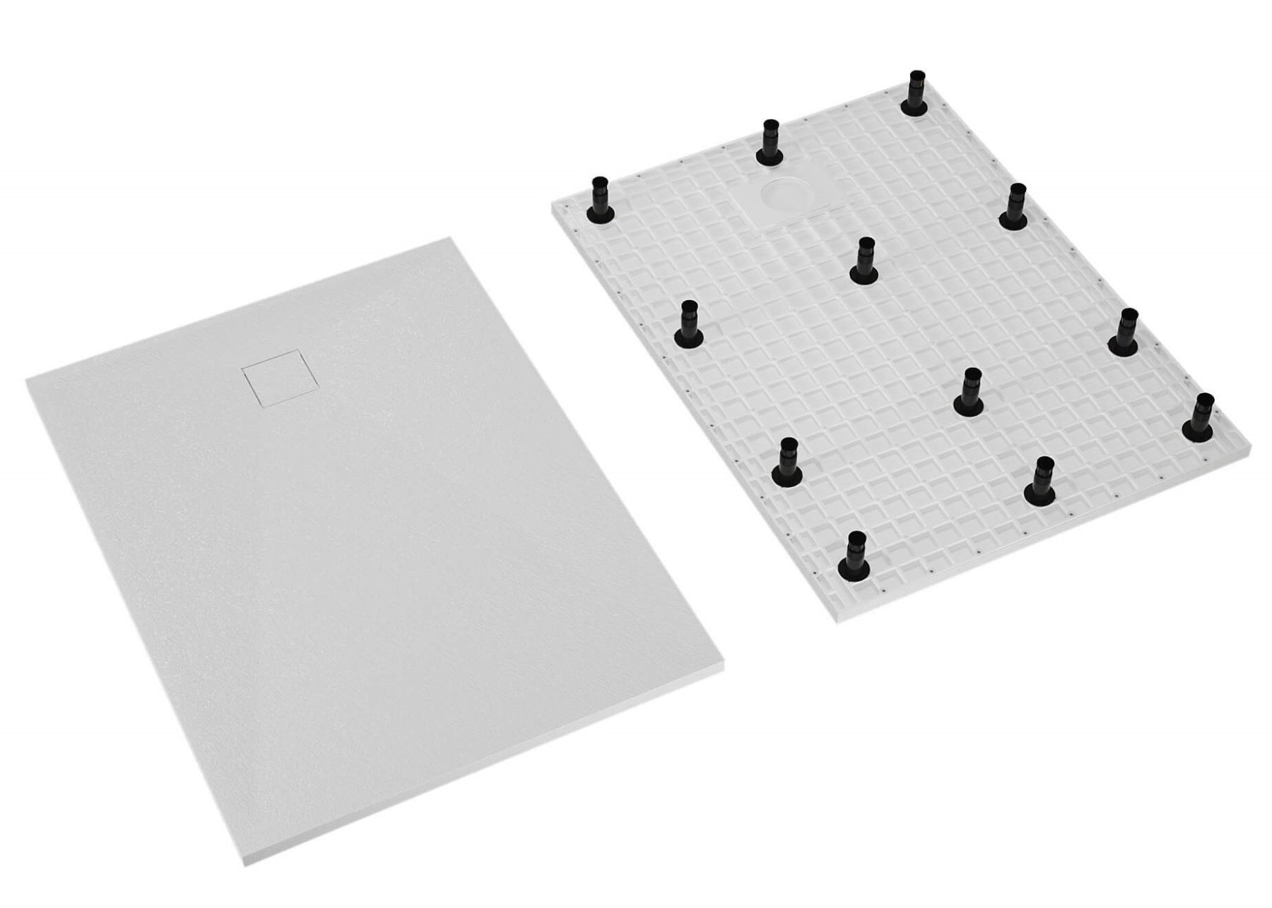 Материал исполнения SMC - стеклопластик или стеклокомпозит.Поддоны производятся на сложнейшем оборудовании под воздействием большого давления и высокой температуры.В результате получаются изделия по твердости поверхности не уступающие закалённому стеклу, а волокнистая структура материала и специальная конструкция поддонов позволяет выдерживать значительные механические нагрузки.Низкая теплопроводность материала, такая же как у дерева, позволяет поддерживать комфортную температуру поверхности поддона в процессе использования.