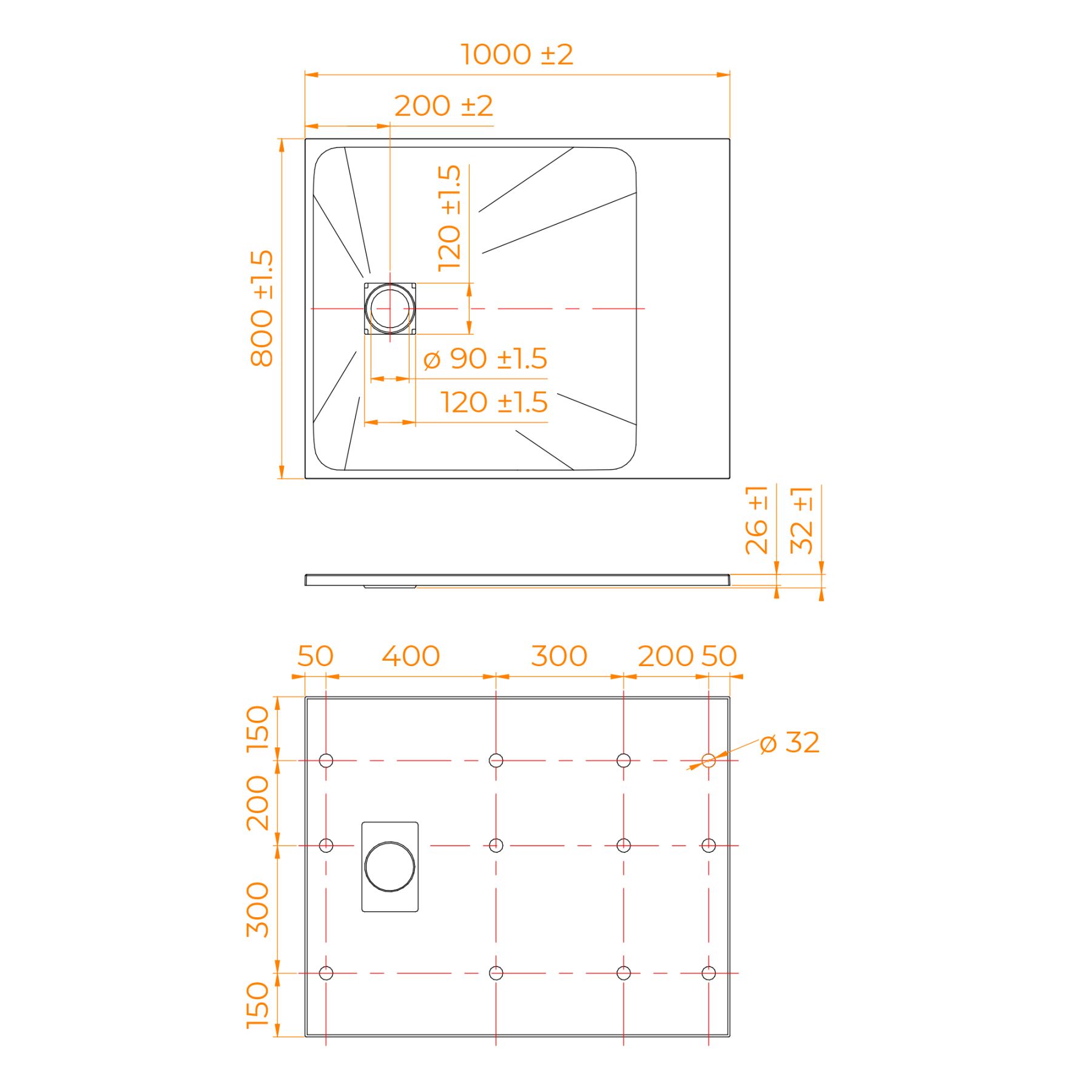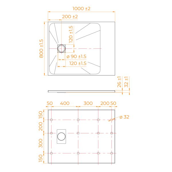 • Общая высота поддона: 26 мм.;