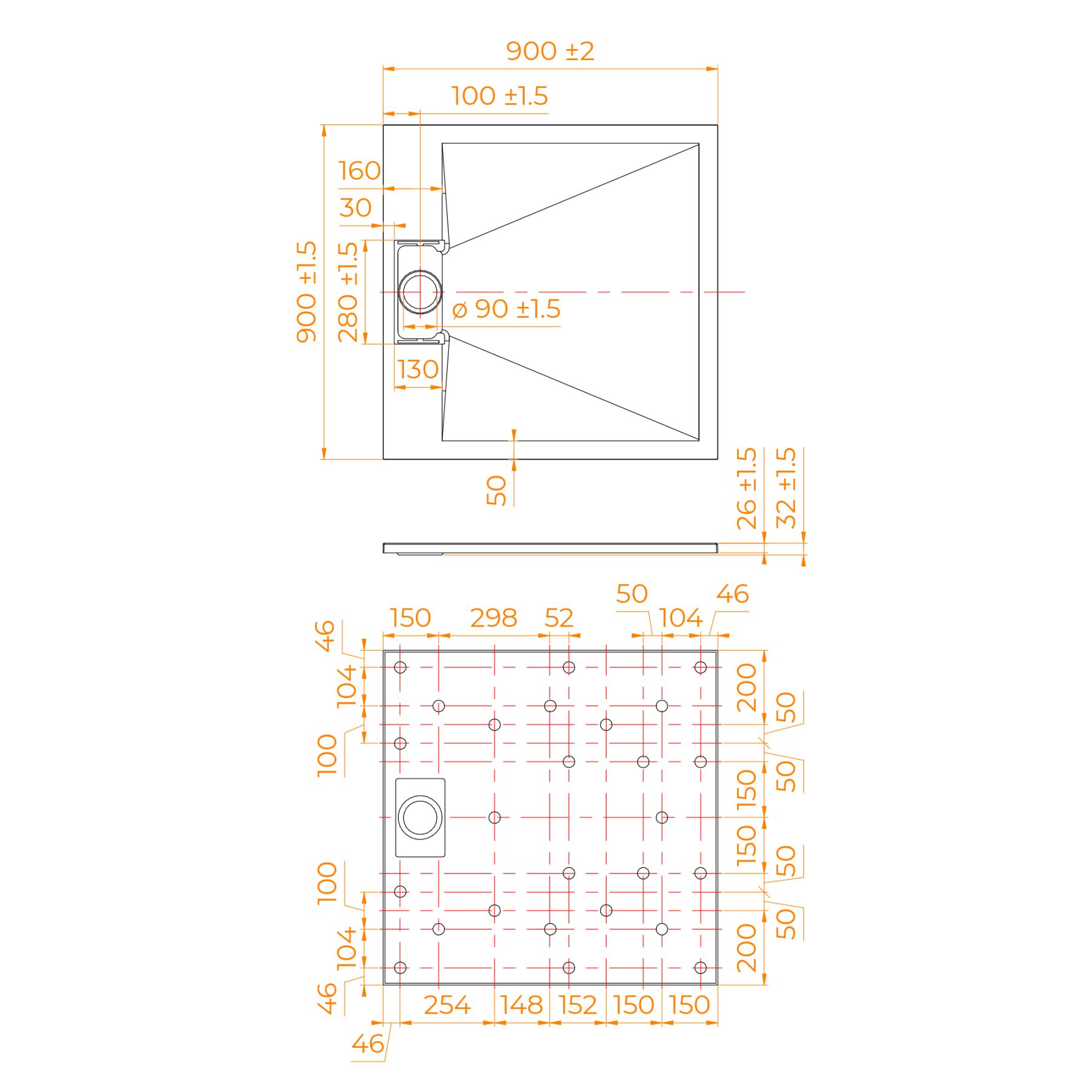 Материал исполнения SMC - стеклопластик или стеклокомпозит.Поддоны производятся на сложнейшем оборудовании под воздействием большого давления и высокой температуры.В результате получаются изделия по твердости поверхности не уступающие закалённому стеклу, а волокнистая структура материала и специальная конструкция поддонов позволяет выдерживать значительные механические нагрузки.Низкая теплопроводность материала, такая же как у дерева, позволяет поддерживать комфортную температуру поверхности поддона в процессе использования.