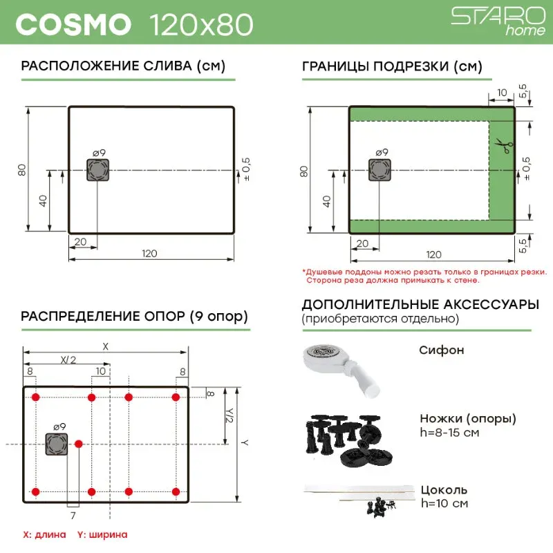 Душевой поддон Starohome Cosmo 99525708 120х80 см