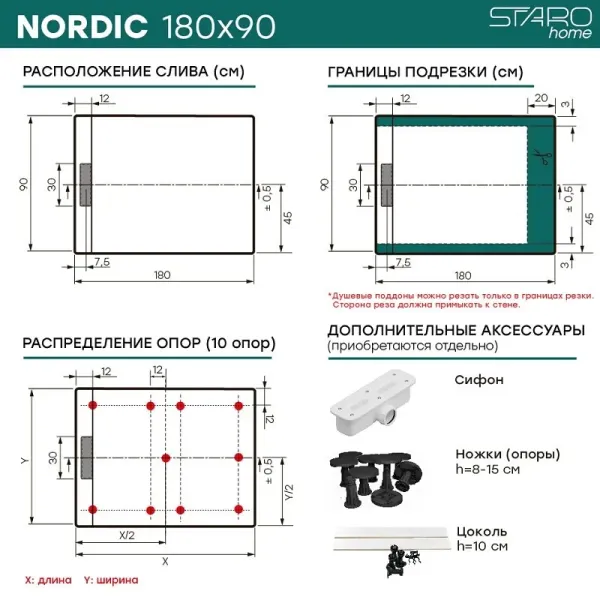 Душевой поддон Starohome NORDIC 50041733 180х90 см купить