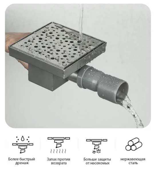 Квадратный трап для душа Gappo G81515-2, размер 15 * 15 см, цвет сатин, изготовлен трап из нержа... Подробнее