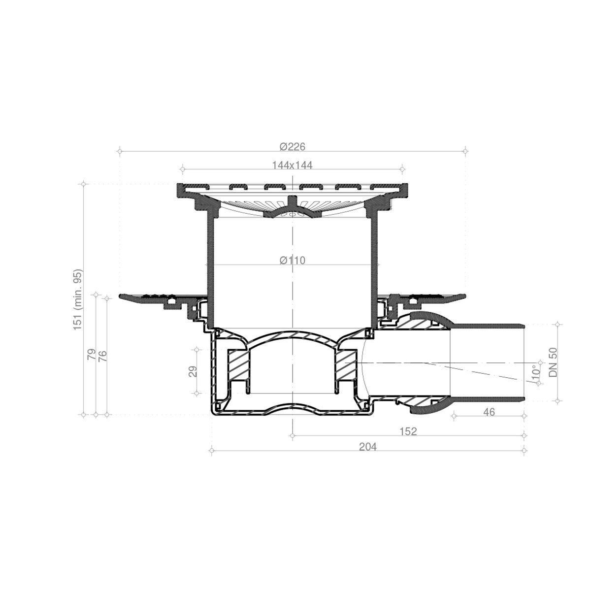 "Решетка: металл с перфорацией "Хром глянец". Базы: 1 - с 1 выходом, 4- S-образный сифон. Материалы: решетка - нержавеющая сталь AISI 304 SS, корпус, сифон - PP. Размеры решетки 100х100 мм и 150х150 мм, пропускная способность 48 л/мин, D=50 мм, поворот базы 360°, минимальная высота монтажа - 78 мм (для базы 2,3), 69 мм (для базы VERTICAL), гидрозатвор. 10х10 - комбинированный затвор 15х15 - гидрозатвор Mask - с рамкой"