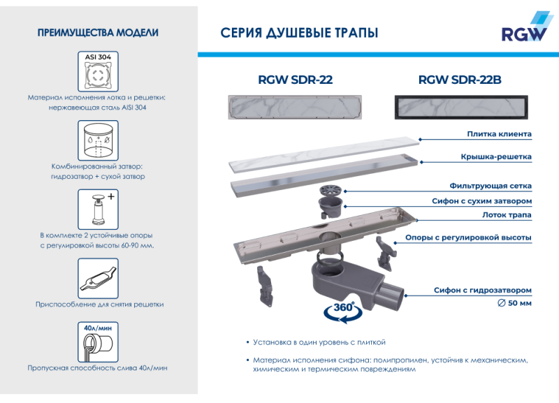 Душевой трап RGW SDR-22-40 47212240-01 с решеткой хром