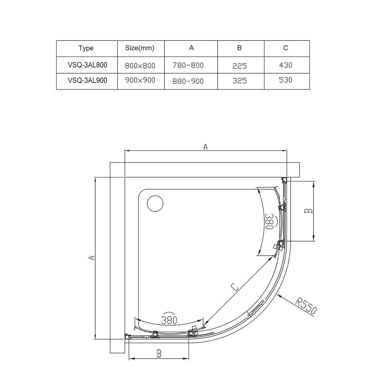 Душевой уголок Vincea Alpha VSQ-3AL900CLB, 900*900, черный, стекло прозрачное