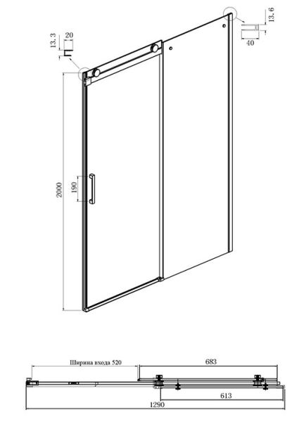 • Конструкция дверей: раздвижная