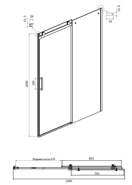 • Конструкция дверей: раздвижная