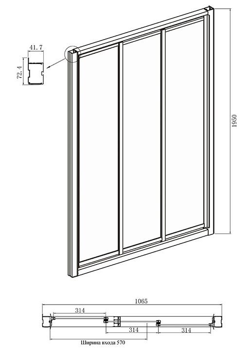 • Конструкция дверей: раздвижная