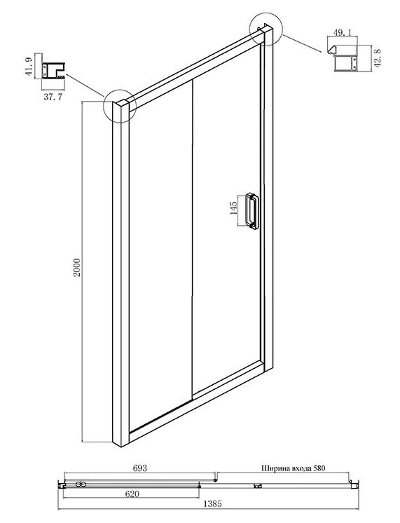 Душевой уголок Ambassador Forsa 17021120AX-80AX 140x80см хром/прозрачное