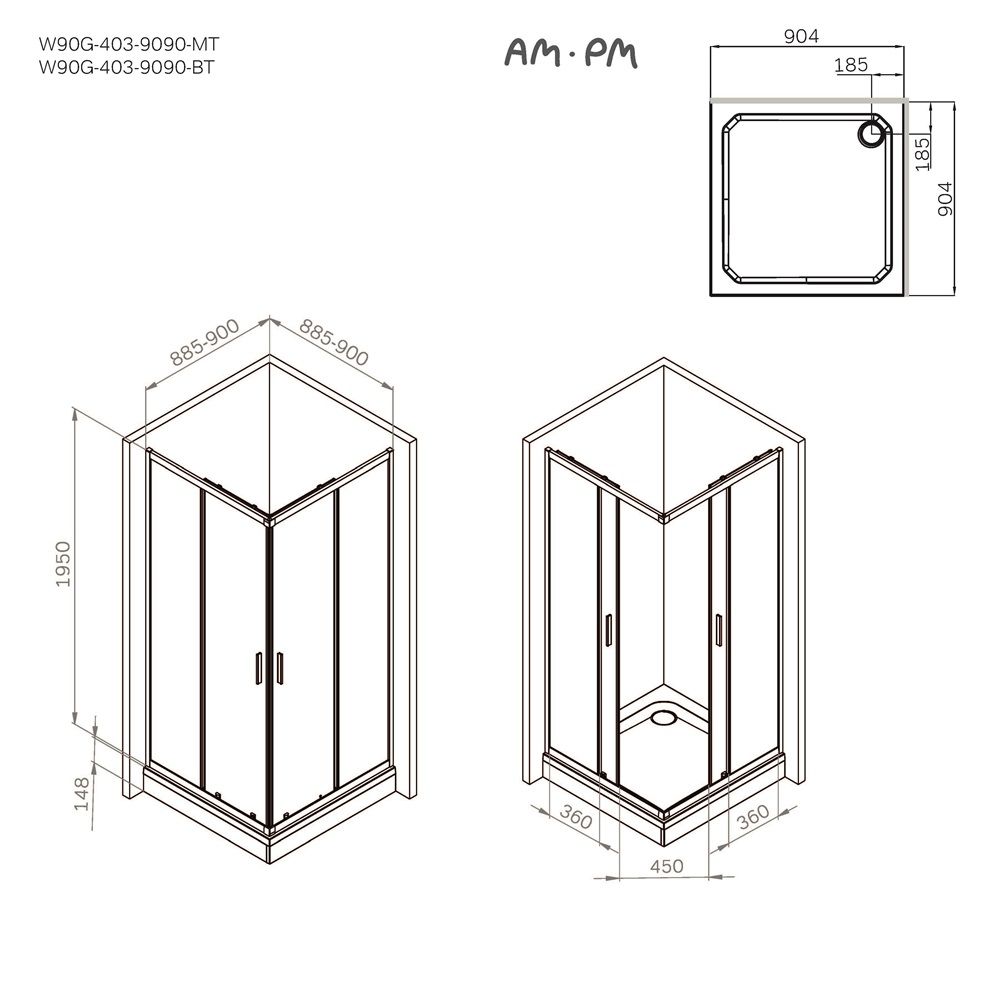 Душевой уголок Am.Pm Gem W90G-403-9090BT 90x90 см без поддона чёрный матовый купить