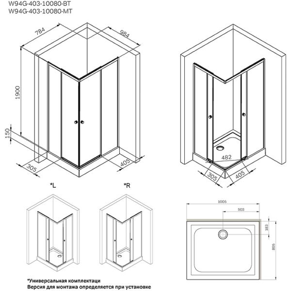 Душевой уголок AM.PM X-Joy W94G-403-10080-BТ 100х80 профиль Черный матовый стекло прозрачное купить